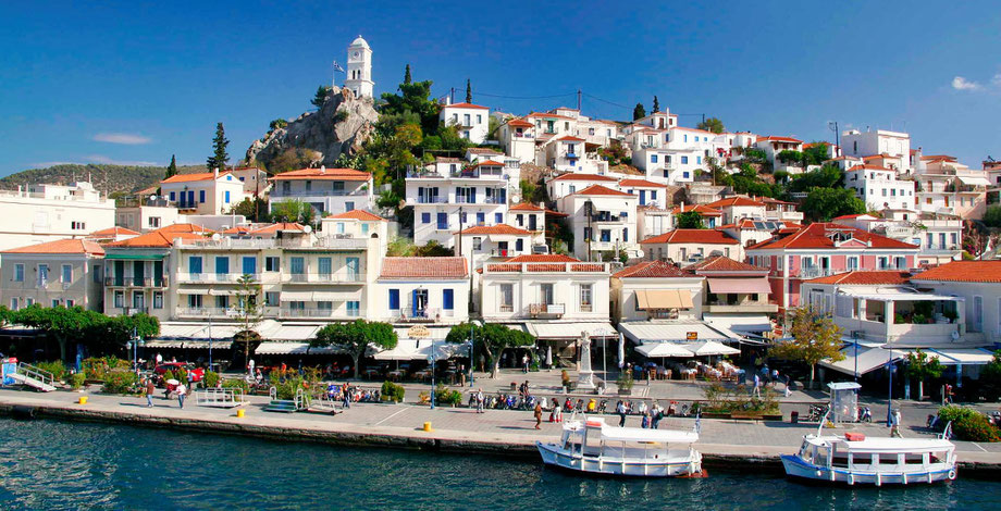 Nur 250m von der Küste des Peloponnes entfernt liegt Poros. Eigentlich eine Insel ohne nenneswerte Sehenswürdigkeiten oder Strände.